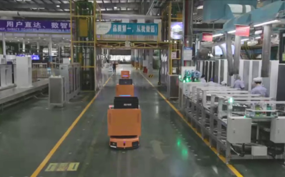 为车载冰箱物流配送打造的智能解决方案,,,,包含产中物流通过潜伏举升AMR搬运至线边,,,产后成品物流智能仓储,,,,流程包含产中物流智能齐套入库,,,线边安灯叫料AMR智能配送至线边,,,成品入库、、、出库,,,通过无人堆高车机器人,,,,智能仓储管理替代人工作业管理,,,实现更高存储、、更高效率、、更具柔性化的解决方案。。